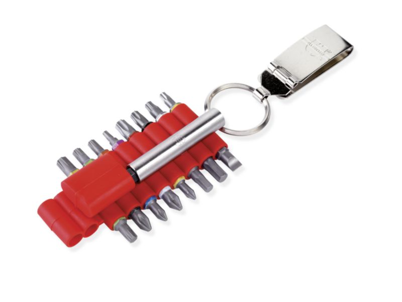Po 1 PH1, PH2, PZ1, PZ2, PZ3, SZ 0,8 x 5,5, šesterokotni vtič velikosti 4 mm, šesterokotni vtič velikosti 5 mm, TX15, TX20, TX25, TX30, AW10, AW20, AW25, AW30, univerzalno držalo |