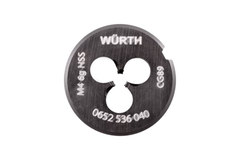 HSS visoko zmogljiva, nitrirana matrica za izdelavo in popravilo standardnih metričnih ISO navojev po DIN 13 z akumulatorskimi vrtalnimi vijačniki ali ročno v držalu matrice v jeklu do 900 N/mm² trdnosti, litem železu in neželeznih kovinah (npr. aluminij, aluminijeve zlitine in magnezijeve zlitine).