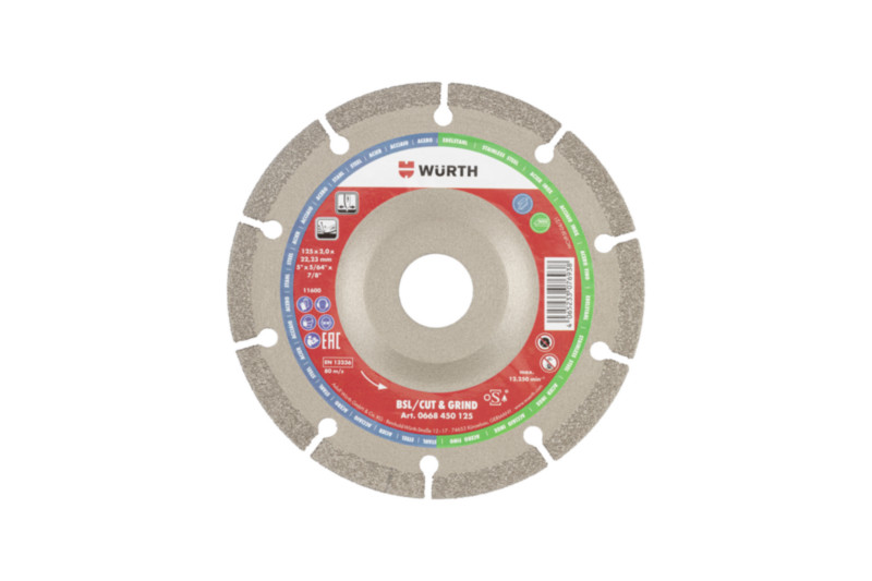 Zelo vsestranska diamantna plošča s posebno vakuumsko spajkano diamantno prevleko (BSL) za rezanje in brušenje. Posebej optimiziran za kovinske aplikacije do debeline materiala 10 mm, za brušenje (odstranjevanje robov, posnemanje robov, odstranjevanje rje, odstranjevanje lakov in barv itd.) in za obdelavo varilnih šivov.