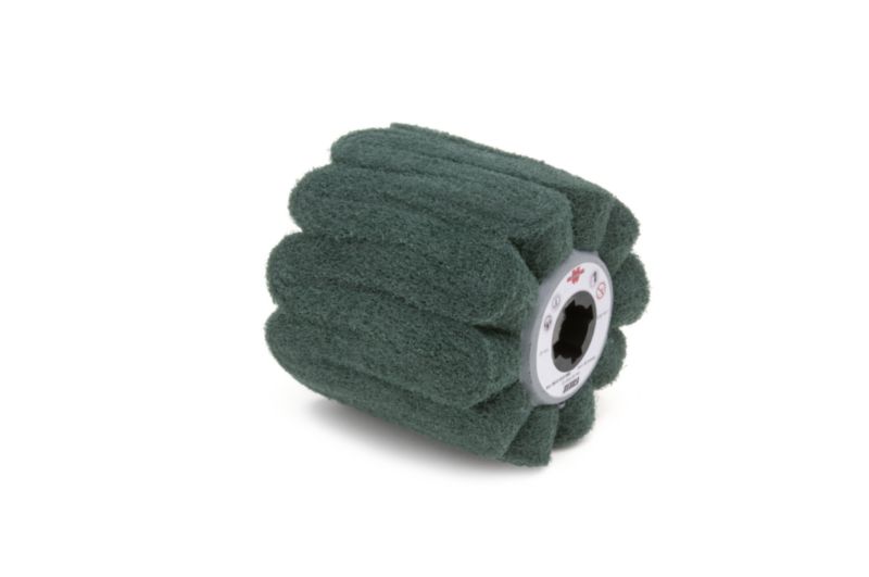 Brusilni valj iz prepognjenega brusnega flisa za matiranje skoraj brez robov. S 6 mm koničastim klinom in luknjo velikosti 19 za stroje za brušenje površin in polirne stroje z vpenjalnim trnom.