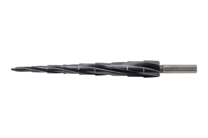 Večnamenski stopničasti sveder z AlCrN prevleko in edinstveno tehnologijo SMART STEP za visoko natančno, prilagodljivo uporabo v pločevini in prvič omogoča vrtanje debelejših obdelovancev iz običajnega jekla do 1300 N/mm² trdnosti, litega železa , aluminij, medenina, bron, pleksi steklo, plastika in les.
