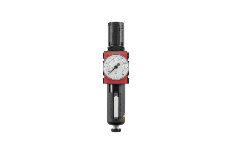 Filter/regulator za oskrbo pnevmatskih naprav s čistim, reguliranim zrakom. To povečuje zmogljivost in življenjsko dobo orodij.