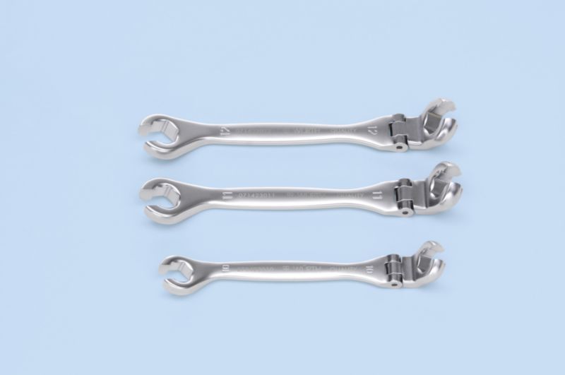 Ključ za vijačne matice ima globok 15-stopinjski zamik in 230-stopinjski vrtljivi sklep na koncu škatle za učinkovit prenos moči tudi na težko dostopnih mestih.