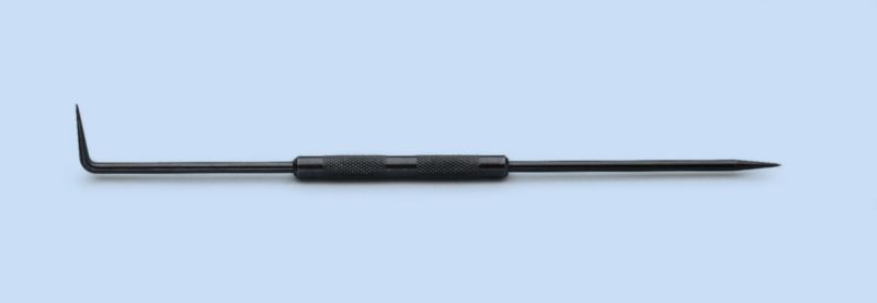 Kodiran jeklen ročaj in privita ravna in ukrivljena jeklena igla.