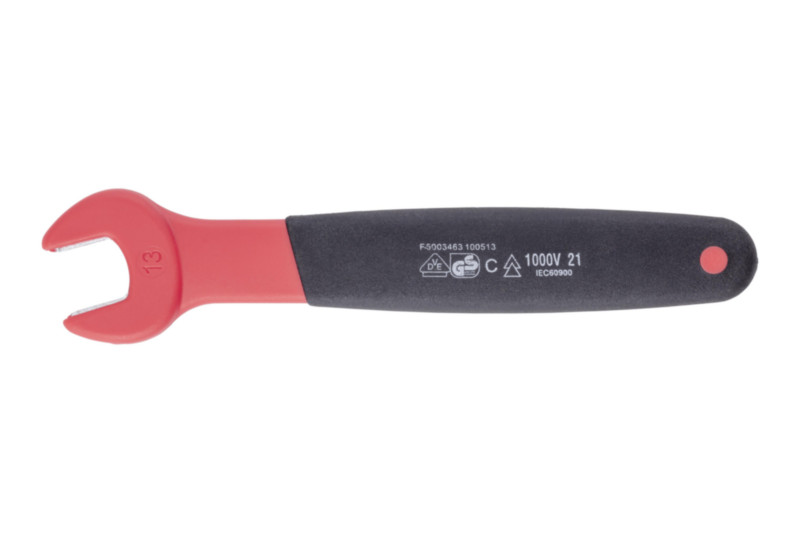Izoliran enojni ključ z odprtim koncem, primeren za delo v bližini delov pod napetostjo.