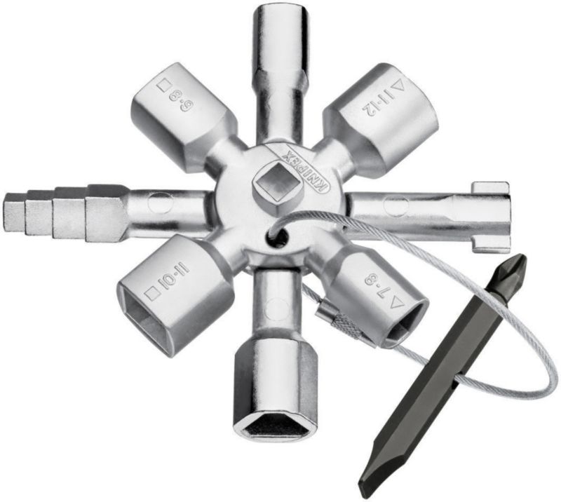 - Ključ in obračalni nastavek sta povezana z robustnim žičnim kablom iz nerjavnega jekla