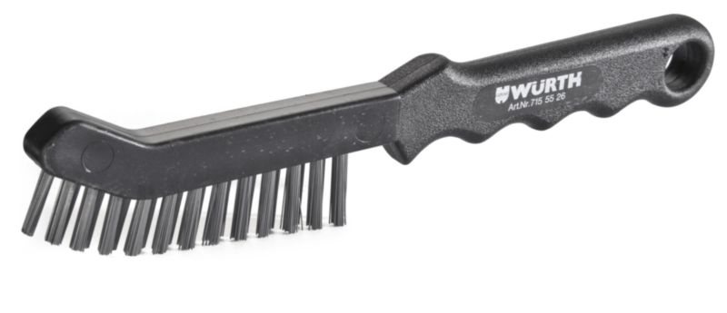 Ozka jeklena žična krtača s plastičnim ročajem.
