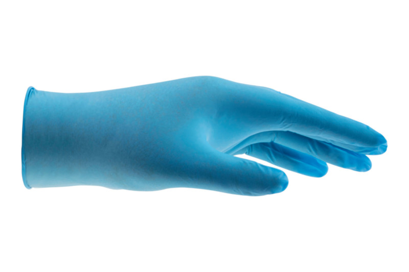 Rokavica za enkratno uporabo, odporna na tekočine in varno za živila.