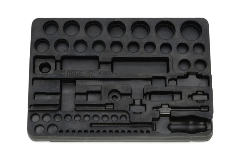 Z vpenjalnim učinkom za 1/4-palčne in 1/2-palčne vijačne ključe, s 56 kosi.
