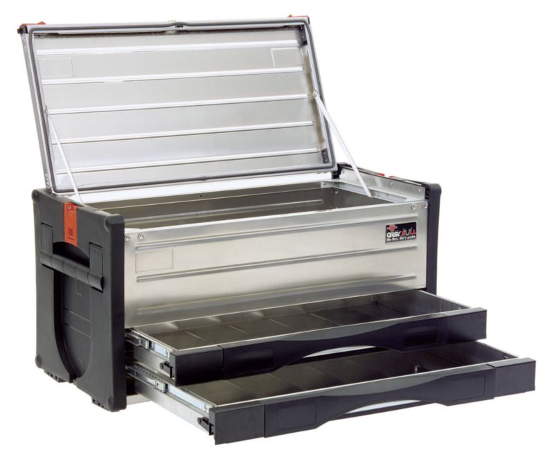 Prevozni in orodni zaboj za večjo urejenost in preglednost, ki združuje zgornji polnilnik in predale.