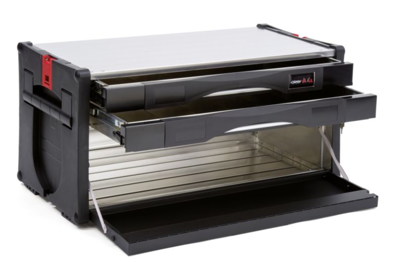 • Izjemno robustni zaradi stranic, odpornih na udarce, izdelanih iz visokokakovostne plastike, ki se prav tako ne deformira in ne povzroča korozije. Škatle lahko nosijo do 100 kg.