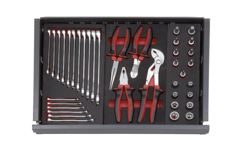 Komplet kombiniranih ključev, metrični, 17 kosov, obroč s 15° vtisnjenim središčem; komplet klešč, 4 kosi; komplet ključev z vtičem 1/2 palca za notranje/vene TX, 17 kosov