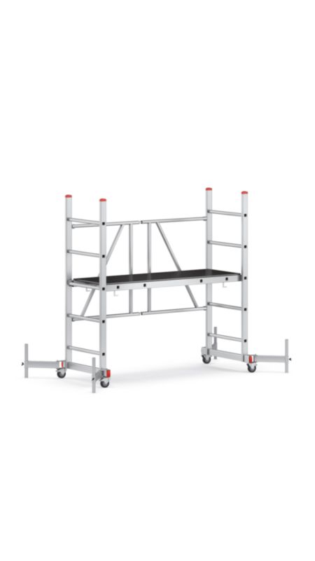 Lahki, kompaktni lestvični odri z oporo iz močnih pravokotnih cevi. Višina stojišča: 1,0 m.