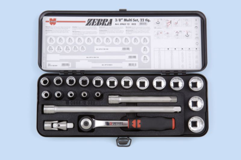 Praktičen 22-delni nabor večnamenskih vtičnic v kovinski škatli