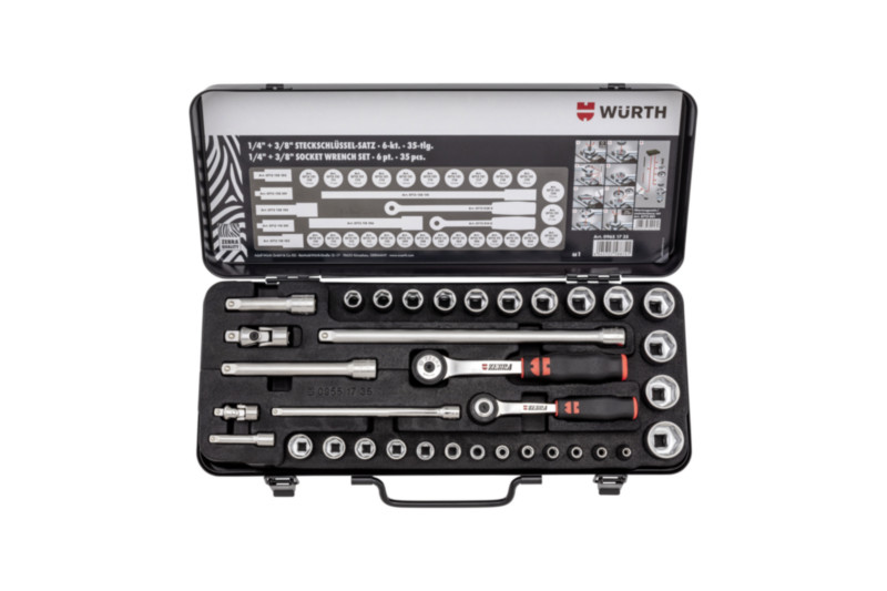 Praktičen 35-delni nabor 1/4-palčnih in 3/8-palčnih nastavkov v kovinski škatli