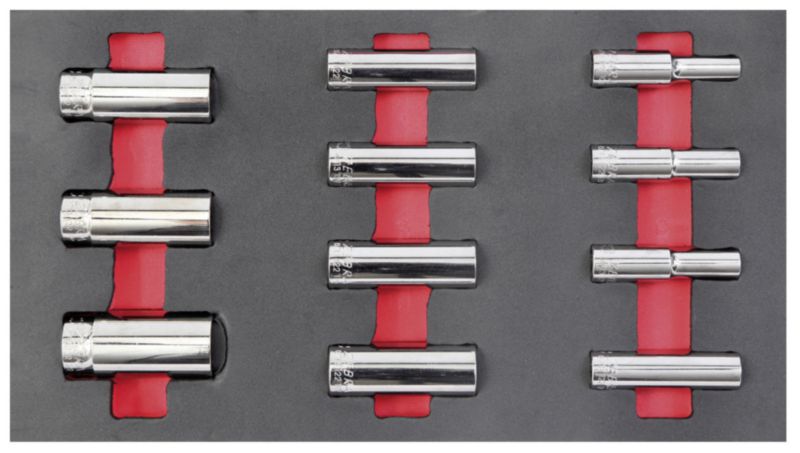 3/8-palčni ključi, metrični, šesterokotni, v vložku iz pene