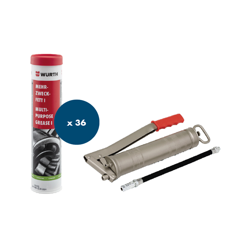 Set vsebuje litijevo mazalno mast na osnovi mineralnega olja za drsne in valjčne ležaje ter kovinsko mazalico.