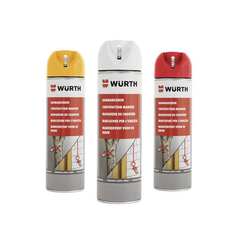Označevalni sprej z ergonomsko pršilno glavo za uporabo v gradbeništvu in geodetstvu. Set vsebuje 12 kosov. Na voljo so različne barve.