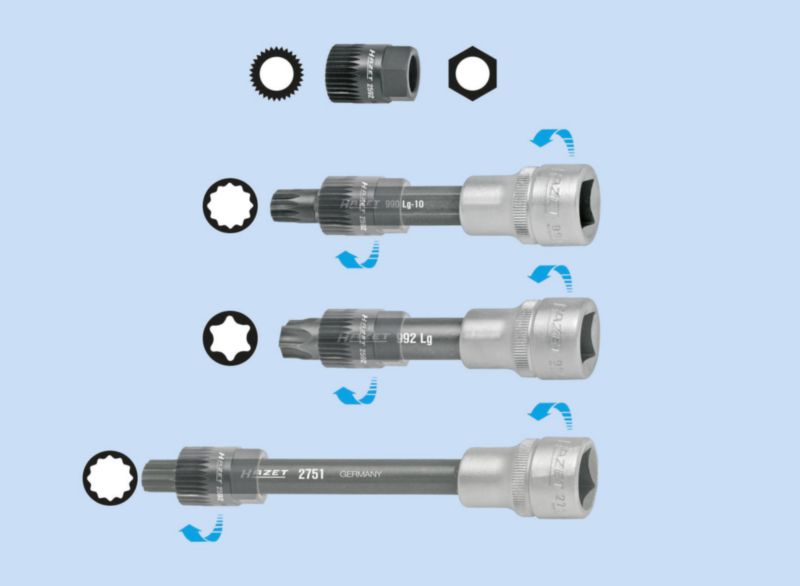 - Za nameščanje in odstranjevanje jermenice prostega remenja z V-rebri na alternatorjih