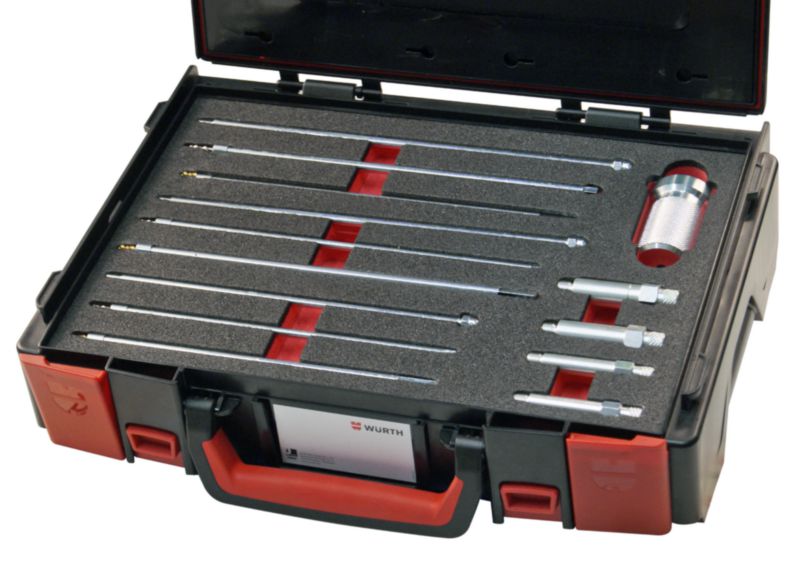 Komplet vsebuje orodja za natančno vodenje originalnega navoja svečke za žarilno nitko ter posebne vrtalnike in rezalnike za izdelavo montažnega navoja v cevi grelnika.