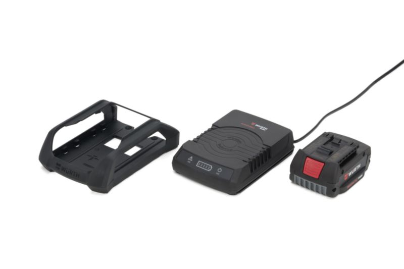 Zmogljiv in robusten 18 V polnilec vklj. 18 V baterija s funkcijo indukcijskega polnjenja.