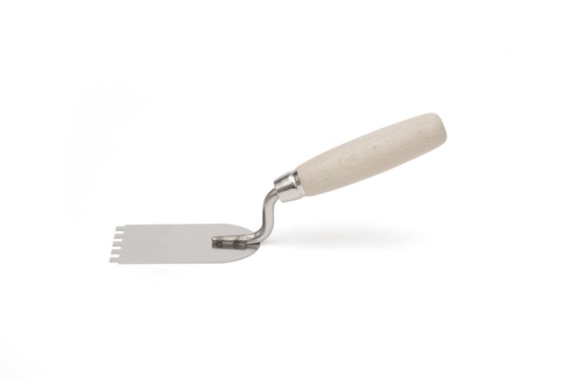 Zobata lopatka za lepljenje ploščic in delo v omejenem prostoru.