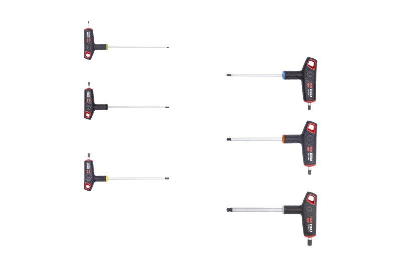 Set izvijačev s T-ročajem za natančno in udobno delo z različnimi vijaki.