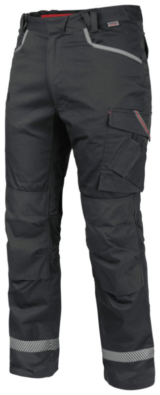 - • Trojno prešiti šivi, sponke za držalo ID, žepi na kolenih, certificirano v skladu z DIN EN 14404