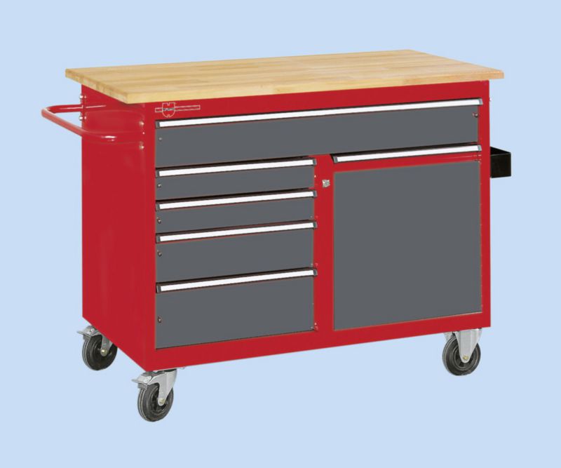 Izjemno robustna in prostorna montažna delovna miza za profesionalno uporabo v delavnici.