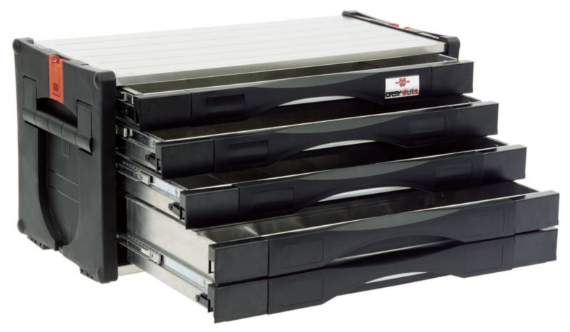 Idealna rešitev za orodja in majhne dele. Strukturira se lahko z uporabo razdelilnikov in sistemskih vložkov. Predali so na voljo s centralnim zaklepanjem in posameznimi zapahi.