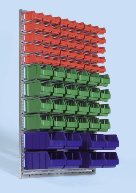 Z univerzalno tirnico za škatle za shranjevanje v velikosti 2/3/4. Idealen za delavnice, obrtna podjetja in industrijo za shranjevanje majhnih in/ali rezervnih delov.
