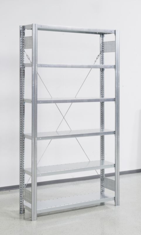 Robustno vtično stojalo s šestimi jeklenimi policami za pregledno in prostorsko varčno shranjevanje datotek in drugega pisarniškega gradiva.