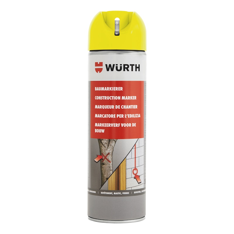 Označevalni sprej z ergonomsko pršilno glavo za uporabo v gradbeništvu in geodetstvu.