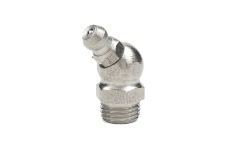 Stožčasta vtičnica za mazivo, oblika B, kotna oblika 45°, DIN 71412, oblika b, pocinkano jeklo s šestkotnikom