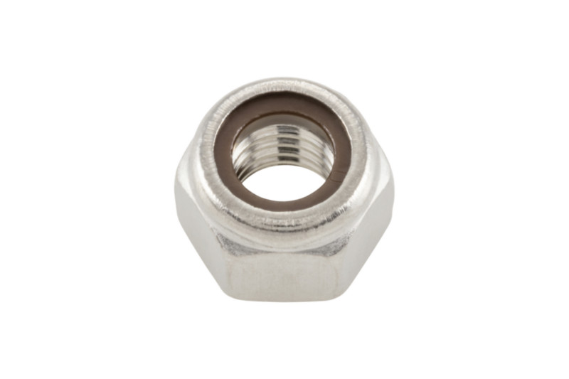 Šestkotna matica z vpenjalnim delom (rjava, nekovinski vložek), ISO 7040, A2-70, nerjavno jeklo, gladko, z rjavim obročem
