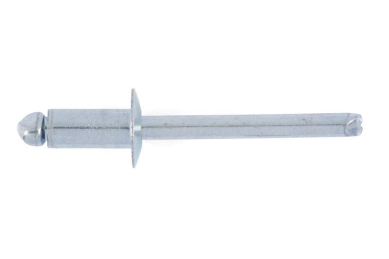 Slepa zakovica, odprta, s trnom za lomljenje in ploščato glavo, ISO 15977, kupolasta glava, aluminij/jeklo