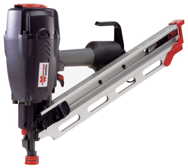 Zmogljiv, lahek pnevmatski žebljičar za obdelavo tračnih žebljev s polovično glavo pod kotom 30–34°.