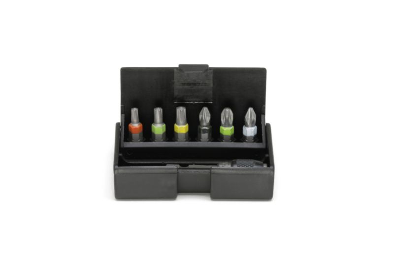 Plastična škatla, odporna na udarce Škatla, natančno prilagojena bitom, preprečuje njihovo izpadanje Pregledno razporejeno shranjevanje in enostavno odstranjevanje Kompaktna oblika škatle za bite se prilega skoraj vsakemu žepu