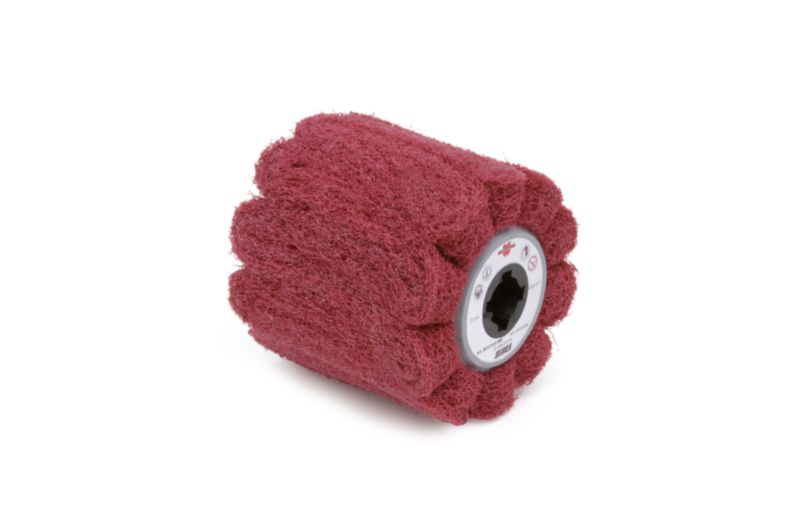 Brusilni valj iz prepognjenega brusnega flisa za matiranje skoraj brez robov. S 6 mm koničastim klinom in luknjo velikosti 19 za stroje za brušenje površin in polirne stroje z vpenjalnim trnom.