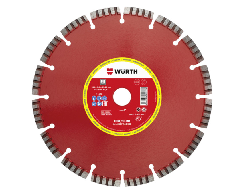 - • Diamantne rezalne plošče so zasnovane za ravno rezanje. Rezalne krivulje deformirajo rezilo in povzročijo razpoke v jedru in odtrganje segmentov — nevarnost poškodb!