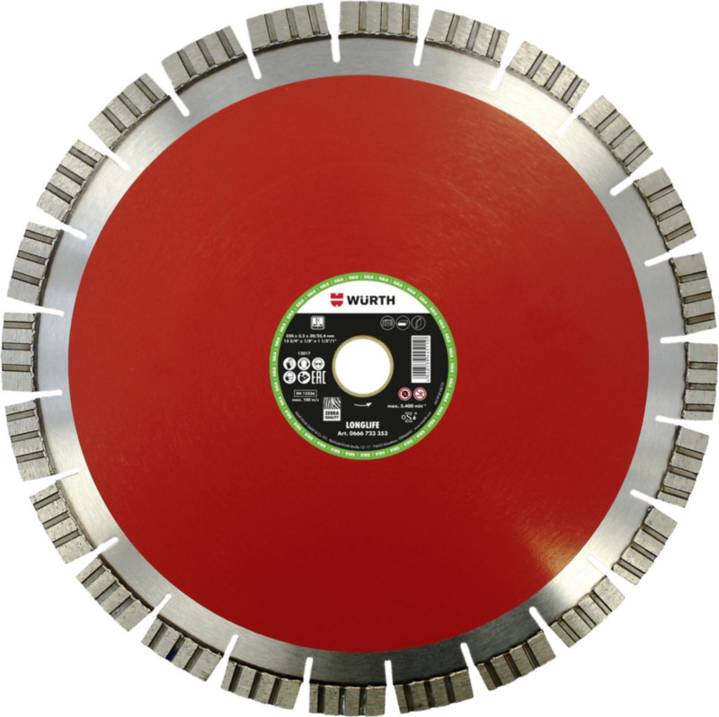 - • Diamantne rezalne plošče so zasnovane za ravno rezanje. Rezalne krivulje deformirajo rezilo in povzročijo razpoke v jedru in odtrganje segmentov — nevarnost poškodb!