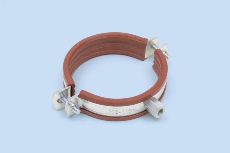 Dvovijačna objemka za večje obremenitve v ogrevalnih sistemih, sanitarnih inštalacijah, cevovodih, sistemih za toplo vodo in parnih ceveh