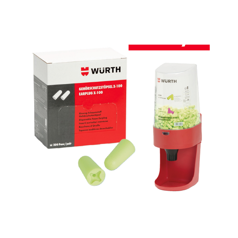Set za zaščito sluha z 200 pari ušesnih čepkov in dozirnim stojalom za enostavno uporabo.