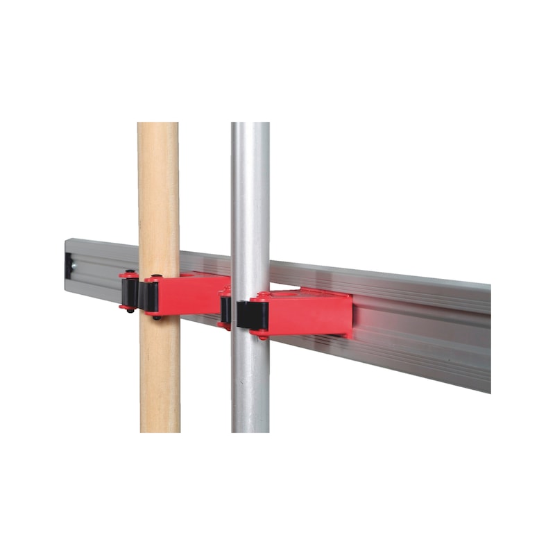 Za pregledno in varno shranjevanje čistilnih pripomočkov. Držalo je primerno tudi za individualno montažo brez aluminijaste letve.