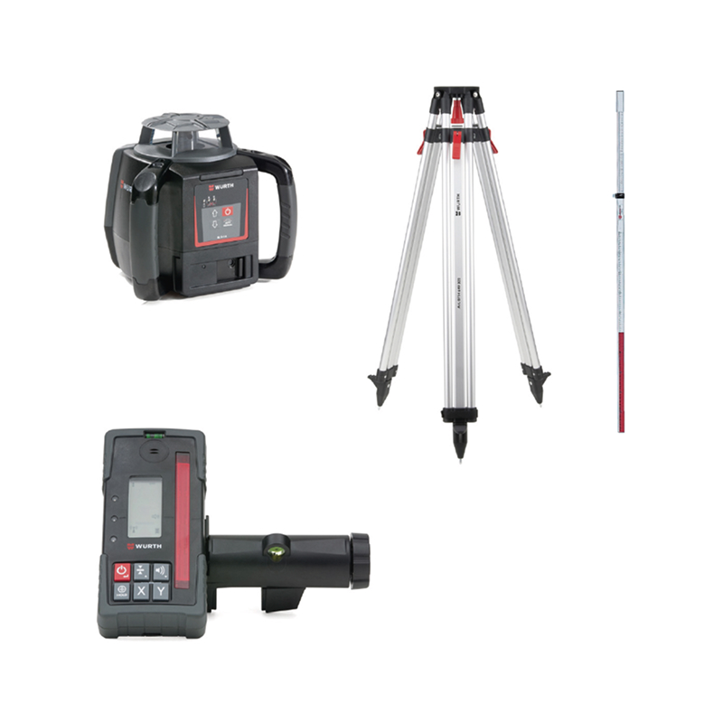 Set Laser RL2-14 je namenjen natančnemu niveliranju na prostem in v zaprtih prostorih, z visoko natančnostjo, dolžinskim dometom in prilagodljivo opremo za različne višine.
