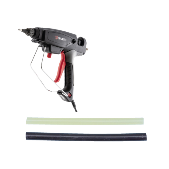 Set je namenjen hitremu in učinkovitemu vročemu lepljenju z zmogljivo pištolo HKP 300 E-Master in dvema vrstama lepilnih palic za različne materiale.