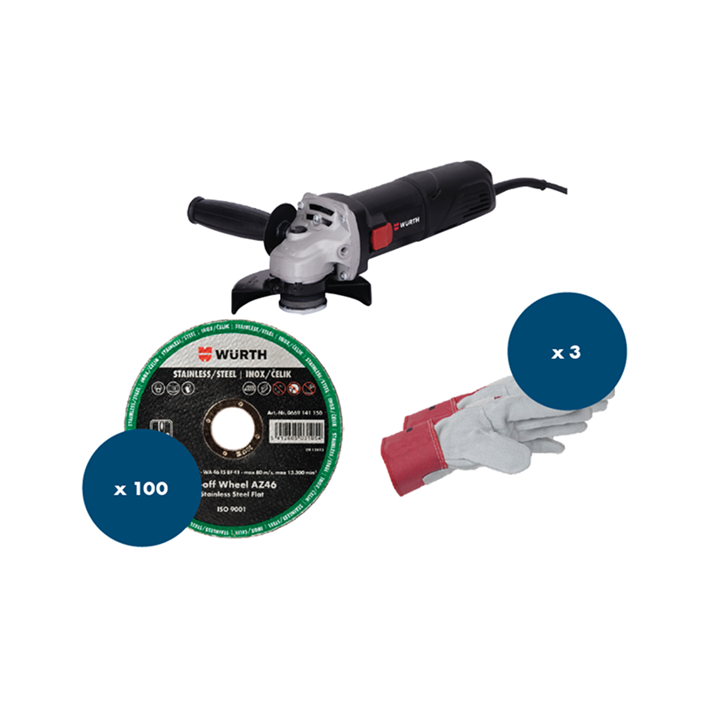 Set brusilnik EAG115 z ploščami in rokavicami-nerjavno jeklo