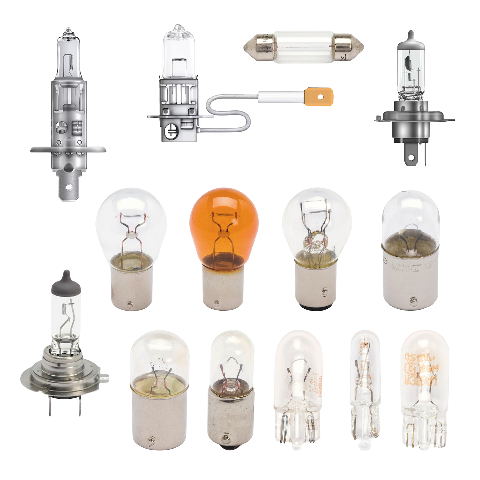 Set Stojalo z 200 žarnicami (12 V) vsebuje stojalo z mešanim izborom avtomobilskih žarnic: halogenske H1/H3/H4/H7 ter različne signalne in pozicijske žarnice (P21/P25, R5W/R10W, BA9S, C5W, W5W in steklene W2 v več izvedbah). Namenjen je kot praktična zaloga najpogostejših 12 V žarnic za hitro zamenjavo.