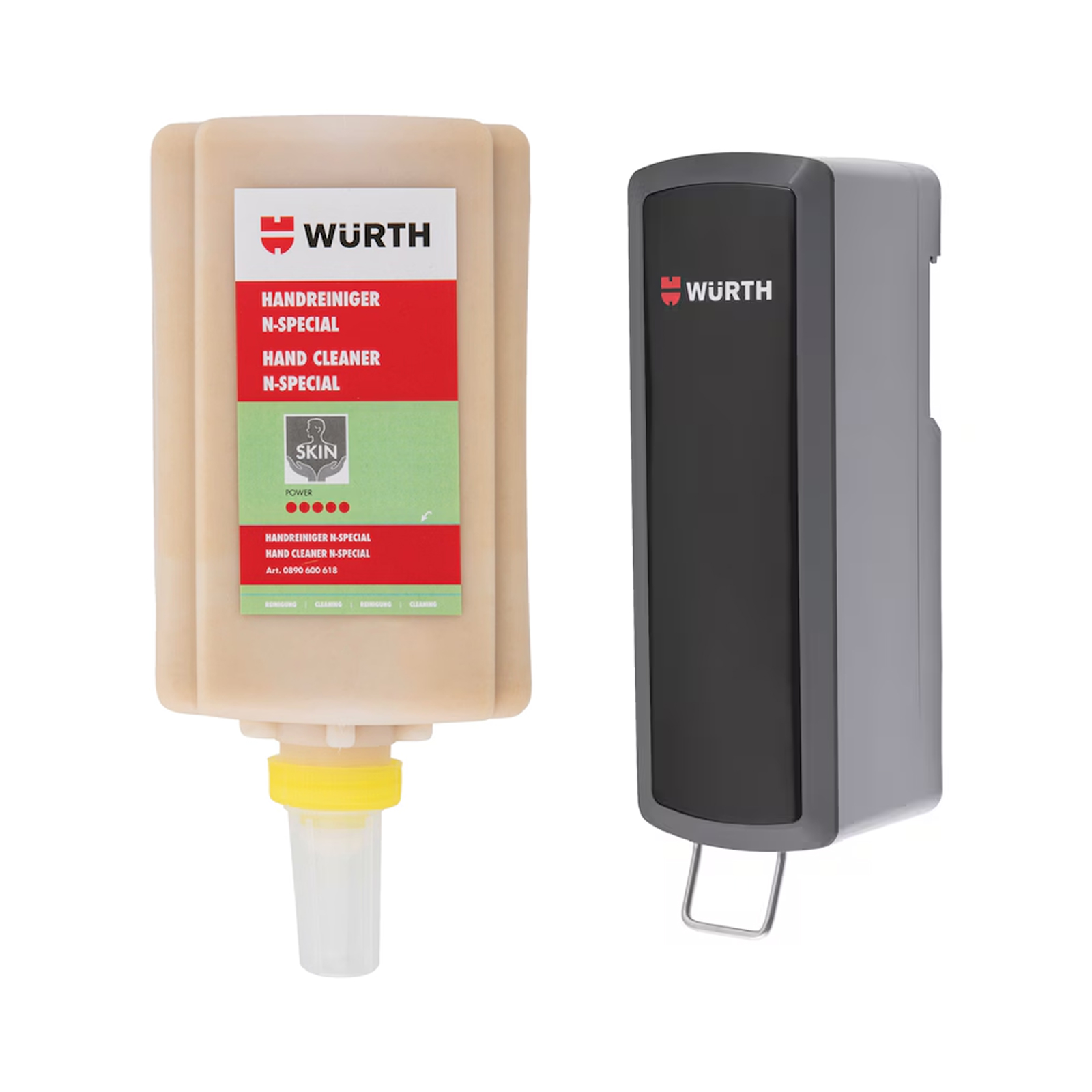 Ročni dozirnik Skin Line (bel ali črn) je prilagojen 1500 ml čistilu za roke Special, skupaj pa omogočata hitro čiščenje rok brez packanja in nepotrebne porabe.