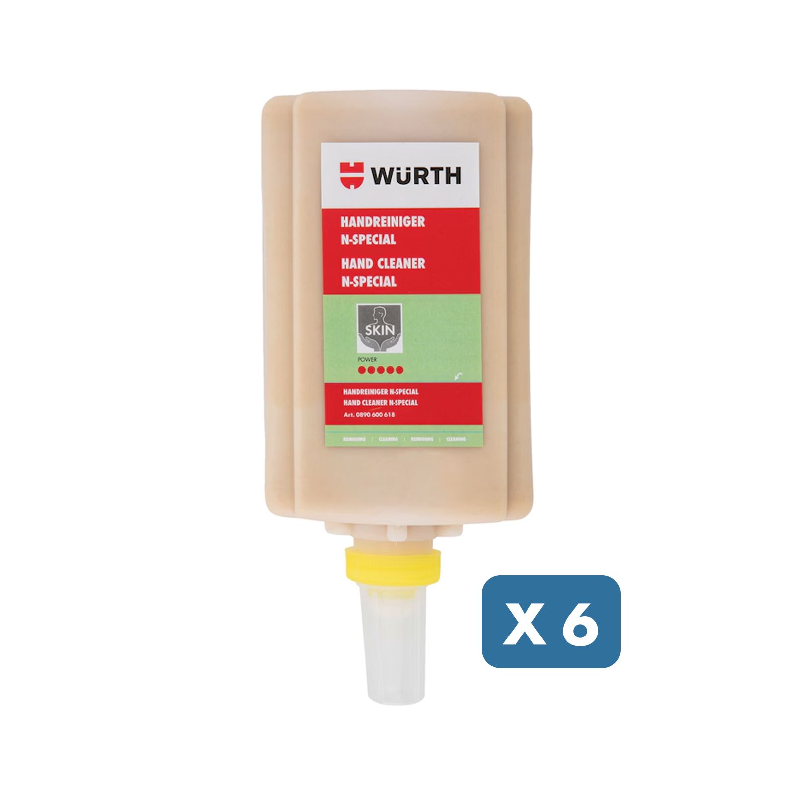Čistilo za roke za močno umazanijo zaradi barve, smole in lepila z naravnimi abrazivi iz moke oljnih semen. Za uporabo v sistemu razpršilnika kože.